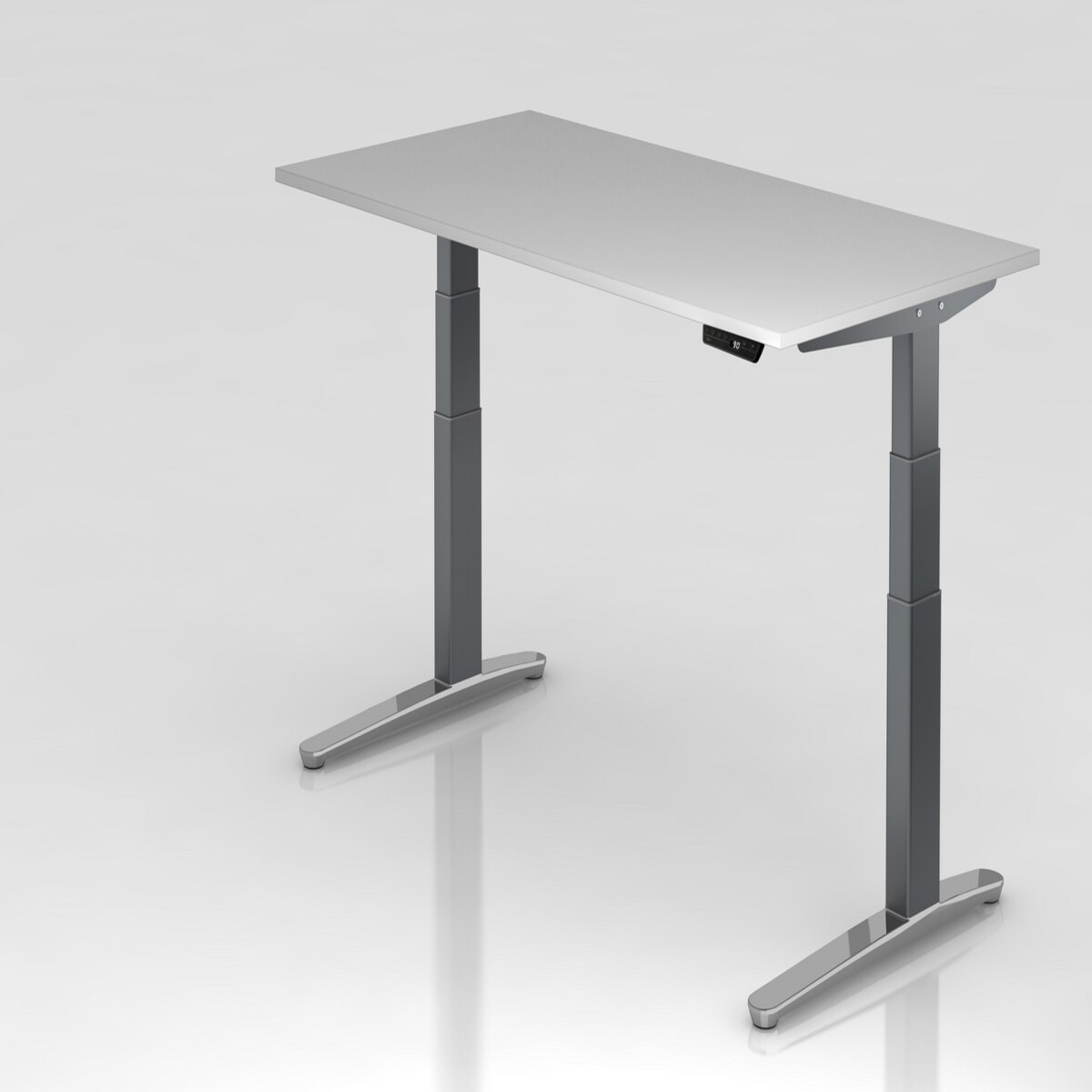 bümö elektrisch höhenverstellbarer Schreibtisch 120x80 cm in graphit, Gestell weiß mit Memory-Steuerung, elektrischer Bürotisch höhenverstellbar