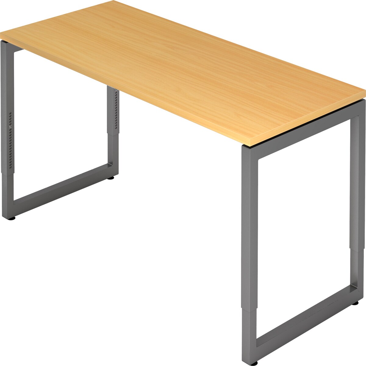 bümö höhenverstellbarer Schreibtisch O-Serie 160x80 cm in Buche, Gestell in Silber - PC Tisch für's Büro manuell höhenverstellbar, Computertisch