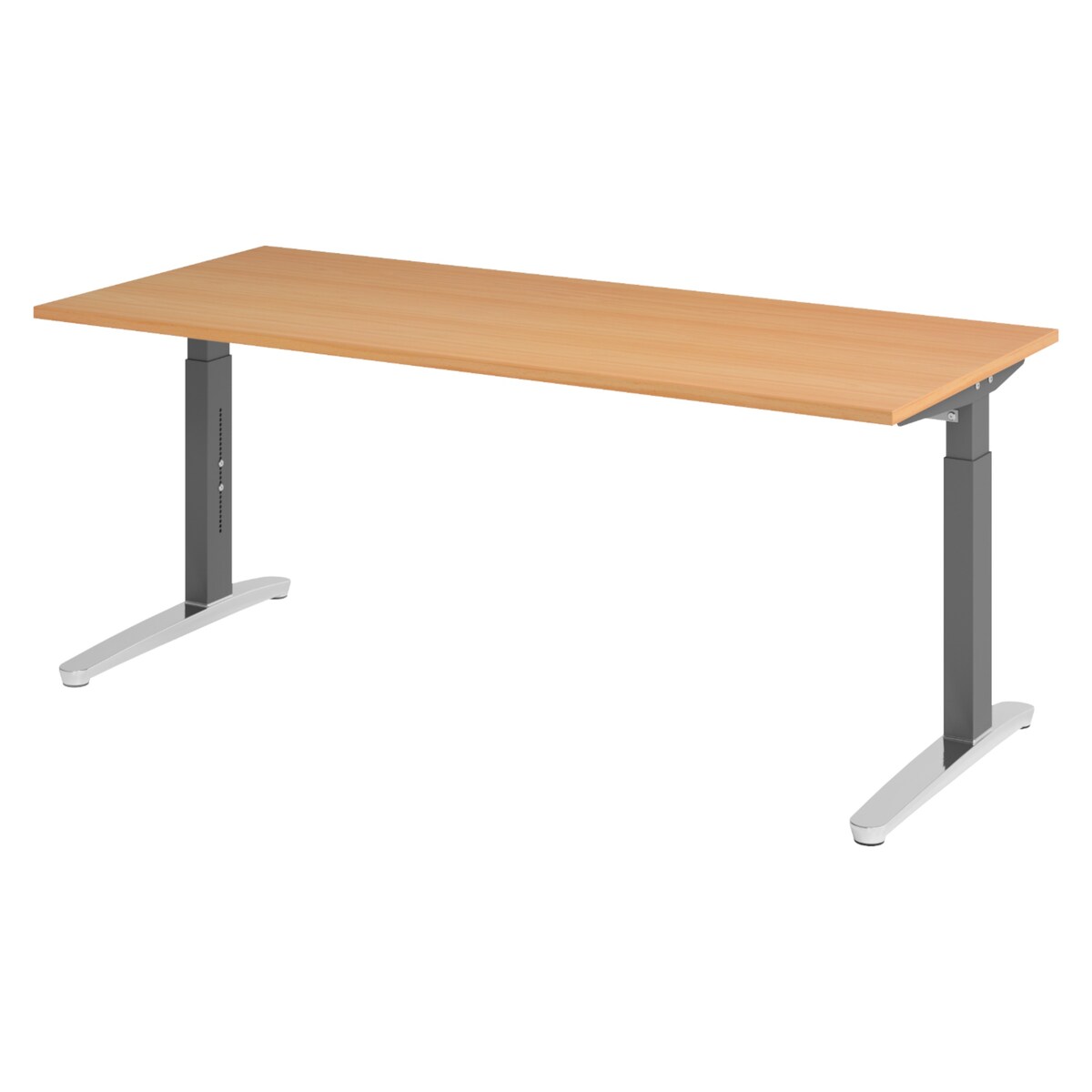 bümö höhenverstellbarer Schreibtisch R-Serie 180x80 cm in Buche, Gestell in Graphit - großer PC Tisch für's Büro manuell höhenverstellbar,