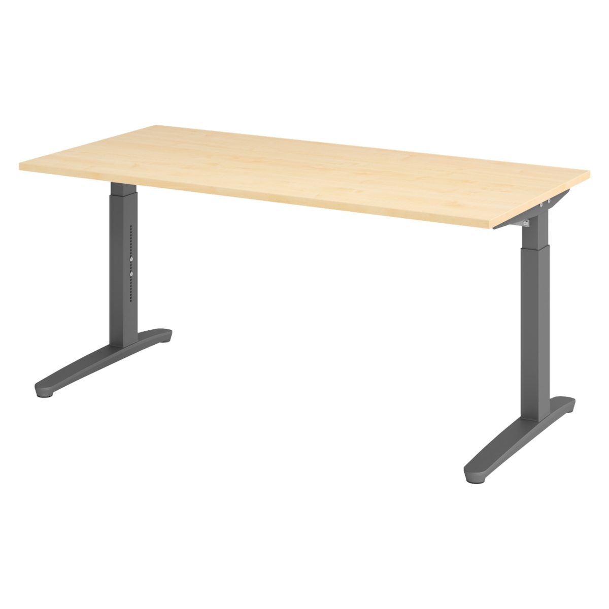 bümö manuell höhenverstellbarer Schreibtisch 160x80 in Ahorn, Gestell in graphit - PC Tisch höhenverstellbar & groß, höhenverstellbarer Tisch Büro,