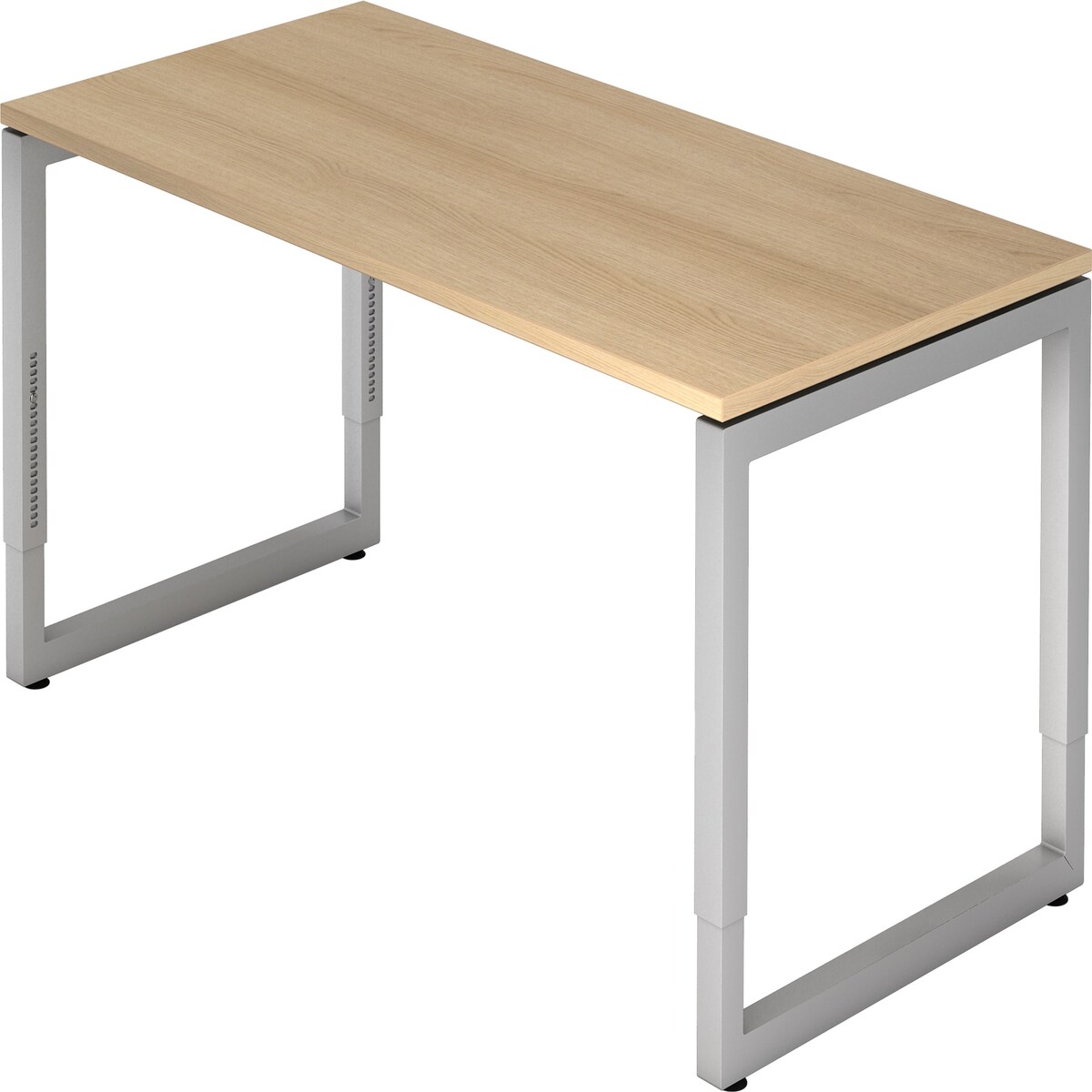 bümö höhenverstellbarer Schreibtisch R-Serie 120x80 cm in Asteiche, Gestell in Silber - PC Tisch klein für's Büro manuell höhenverstellbar,