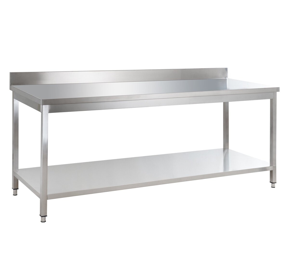 GastroHero Edelstahl Arbeitstisch Basic 160x60 cm mit Grundboden & Aufkantung Chrom-Nickel-Stahl AISI201 verstärkte Arbeitsplatte höhenverstellbar