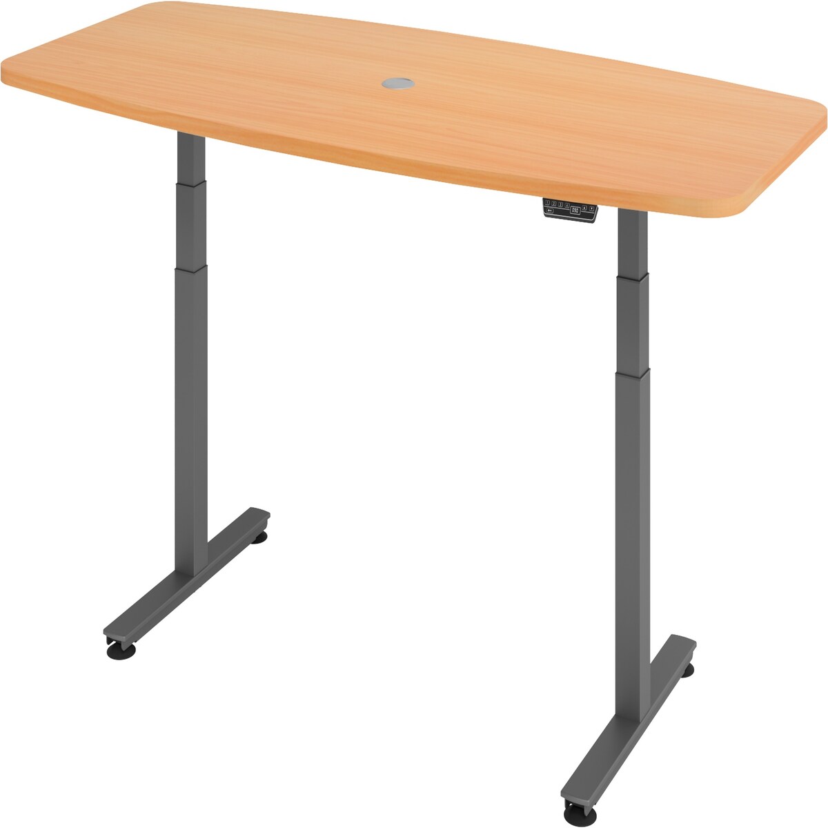 bümö Konferenztisch elektrisch höhenverstellbar 220x103 in Buche, Gestell: Graphit - elektrischer Besprechungstisch oval mit Memoryfunktion