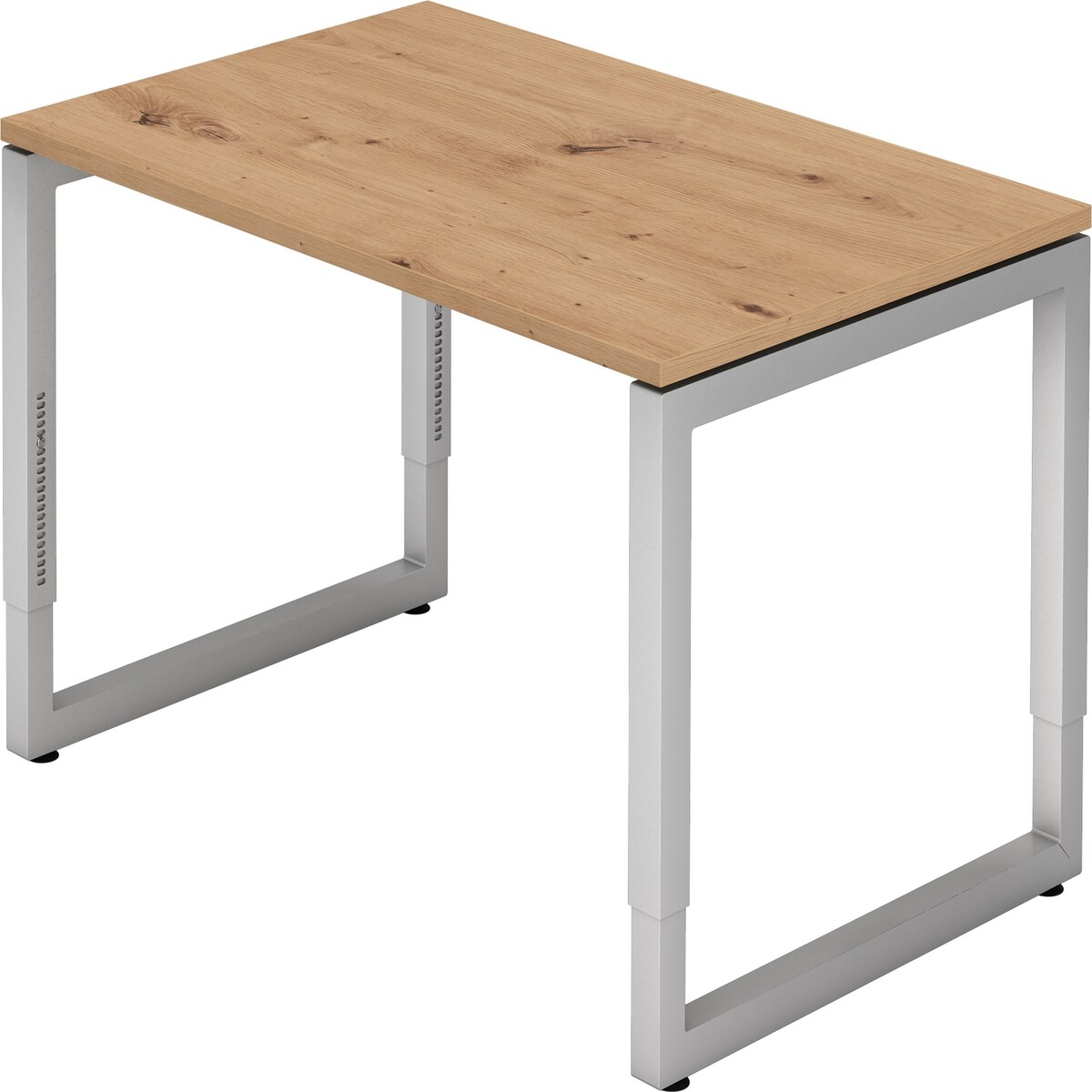 bümö höhenverstellbarer Schreibtisch R-Serie 120x80 cm in Asteiche, Gestell in Silber - PC Tisch klein für's Büro manuell höhenverstellbar,