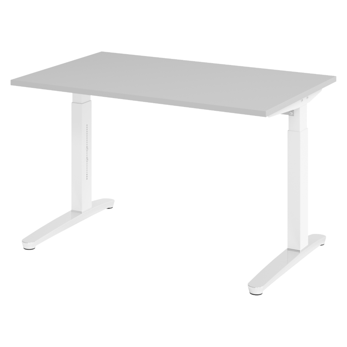 bümö höhenverstellbarer Schreibtisch O-Serie 120x80 cm in grau, Gestell in weiß - PC Tisch klein für's Büro manuell höhenverstellbar, Computertisch