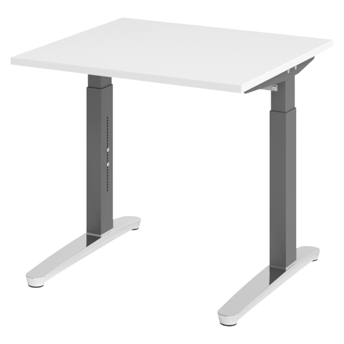 bümö höhenverstellbarer Schreibtisch 80x80 cm in weiß, Gestell graphit - PC Tisch höhenverstellbar & klein, höhenverstellbarer Tisch Büro, kleiner