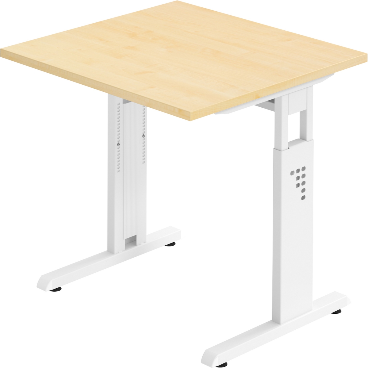 bümö höhenverstellbarer Schreibtisch O-Serie 80x80 cm in Ahorn, Gestell in weiß - PC Tisch klein für's Büro manuell höhenverstellbar, Computertisch