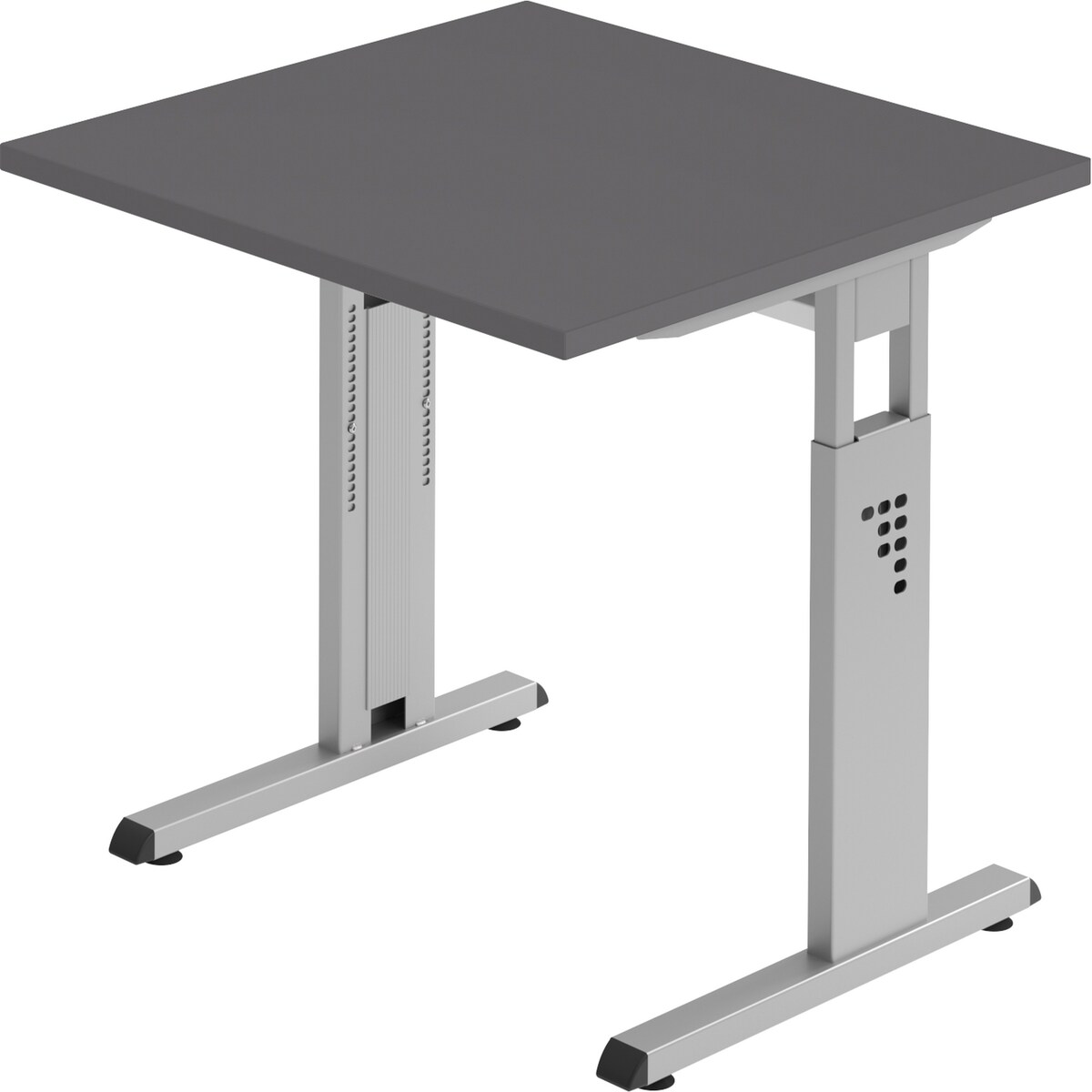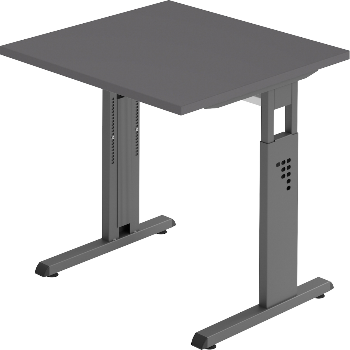 bümö höhenverstellbarer Schreibtisch O-Serie 80x80 cm in Graphit, Gestell in Graphit - PC Tisch klein für's Büro manuell höhenverstellbar,
