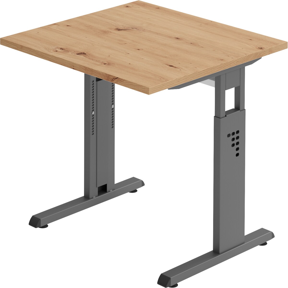 bümö höhenverstellbarer Schreibtisch O-Serie 80x80 cm in Asteiche, Gestell in Graphit - PC Tisch klein für's Büro manuell höhenverstellbar,