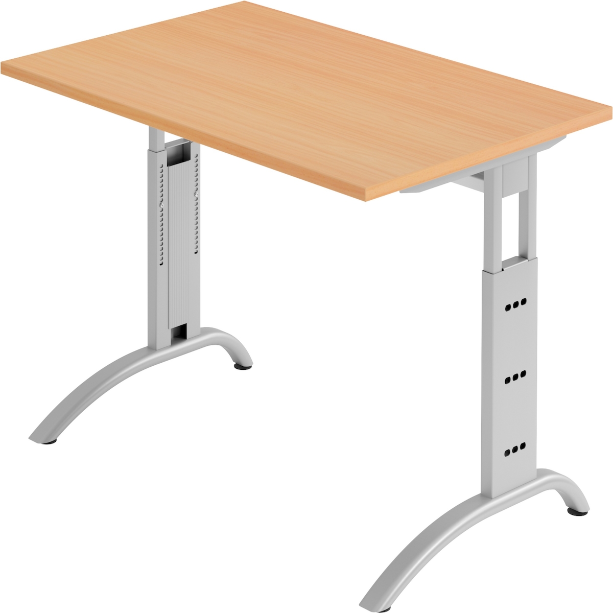 bümö manuell höhenverstellbarer Schreibtisch 120x80 in Buche, Gestell in silber - PC Tisch höhenverstellbar & klein, höhenverstellbarer Tisch Büro,
