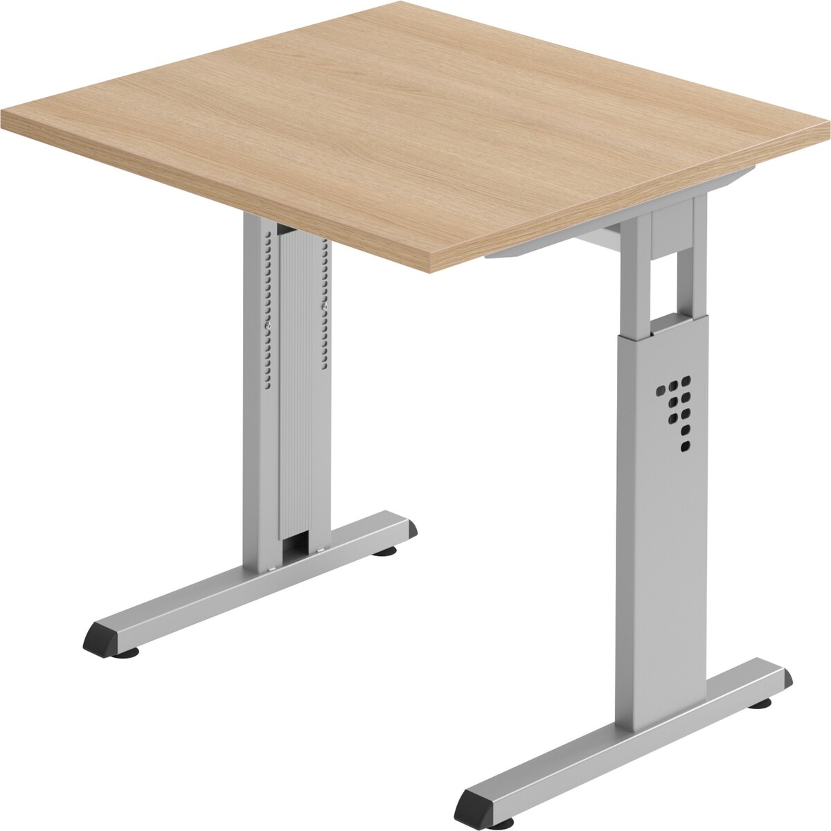 bümö höhenverstellbarer Schreibtisch O-Serie 80x80 cm in Eiche, Gestell in Silber - PC Tisch klein für's Büro manuell höhenverstellbar, Computertisch