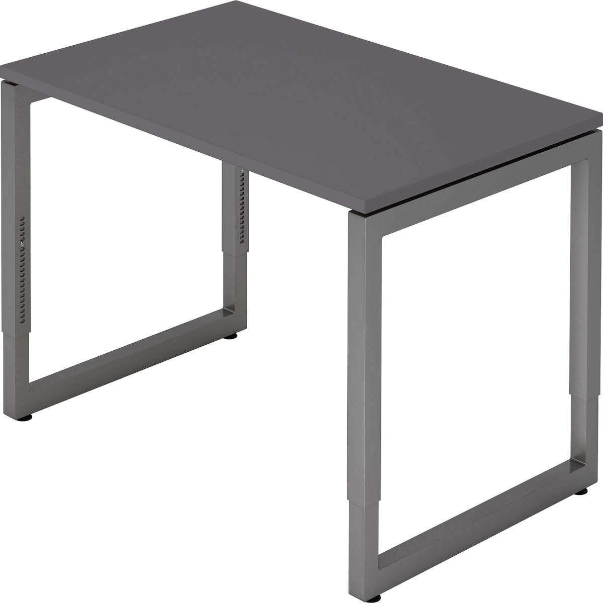 bümö höhenverstellbarer Schreibtisch R-Serie 120x80 cm in grau, Gestell in Graphit - PC Tisch klein für's Büro manuell höhenverstellbar,