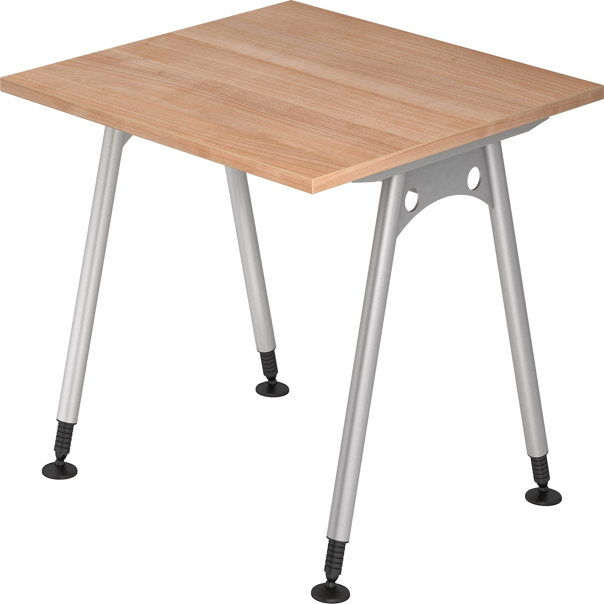 bümö höhenverstellbarer Schreibtisch 80x80 cm in Nussbaum, Gestell silber - PC Tisch höhenverstellbar & klein, höhenverstellbarer Tisch Büro, kleiner