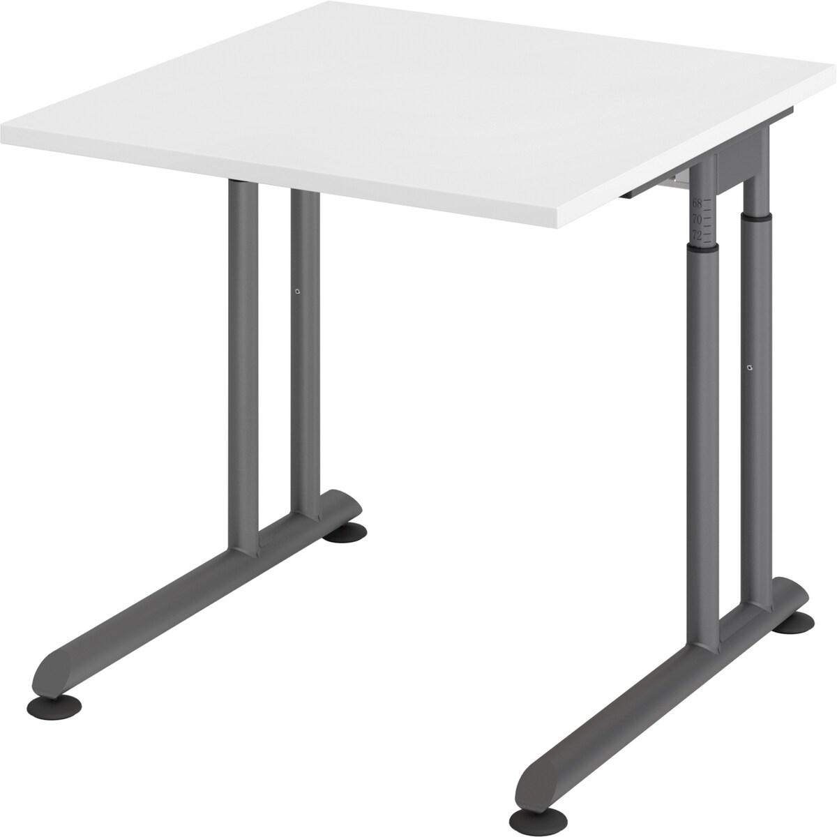 bümö höhenverstellbarer Schreibtisch Z-Serie 80x80 cm in weiß, Gestell in Graphit - PC Tisch klein für's Büro manuell höhenverstellbar, Computertisch