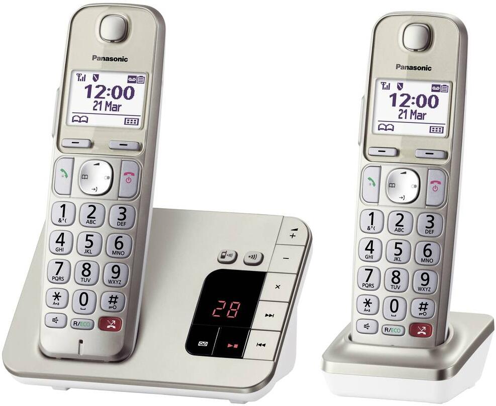 Panasonic KX-TGE262GN Schnurgebundenes Telefon analog DECT/GAP Anrufbeantworter Freisprechen Hörgeräte kompatibel champagner gold