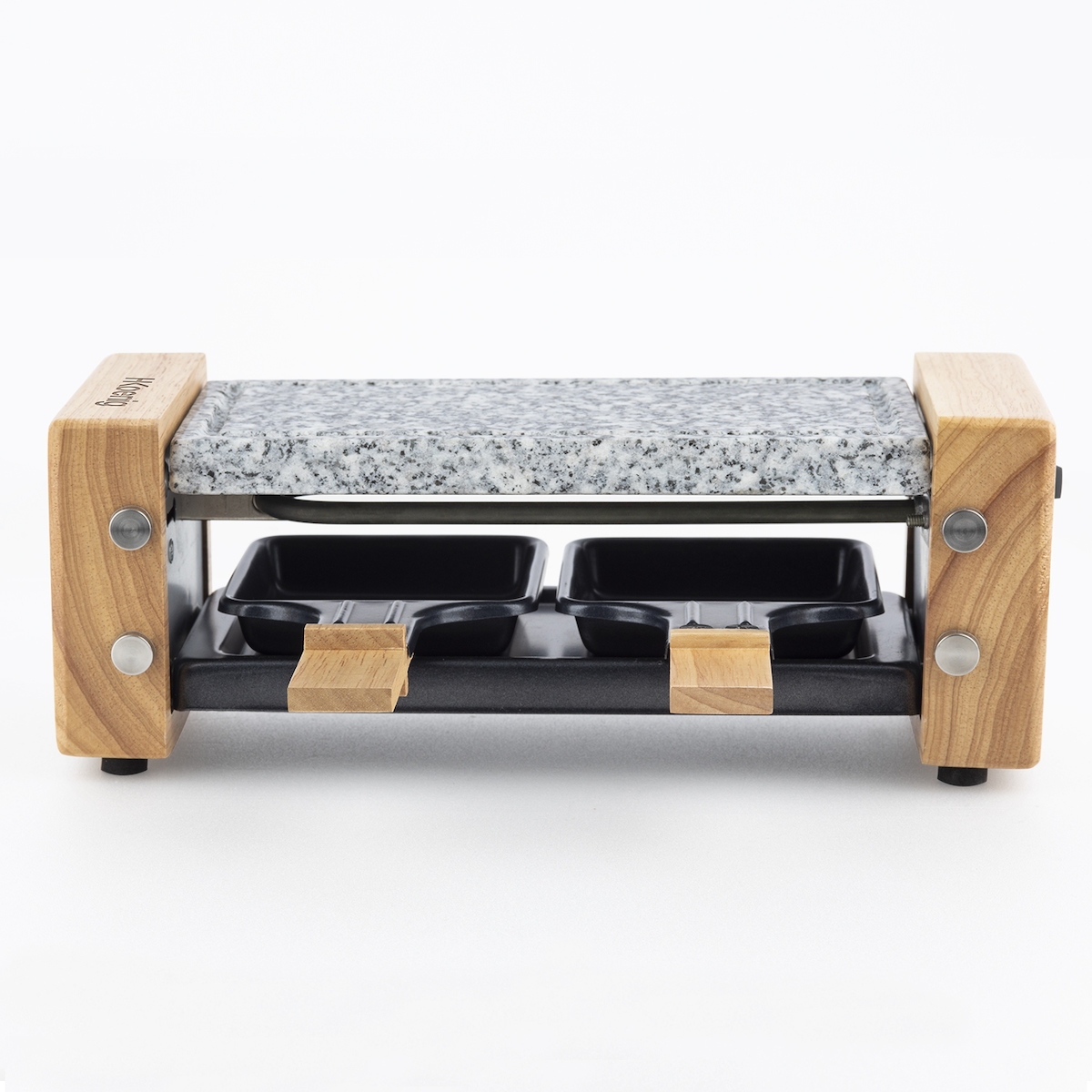 H.Koenig Raclettegerät WOD2/ 2 Personen/Granitstein /2 antihaftbeschichtete Pfännchen, 2 Holzspatel