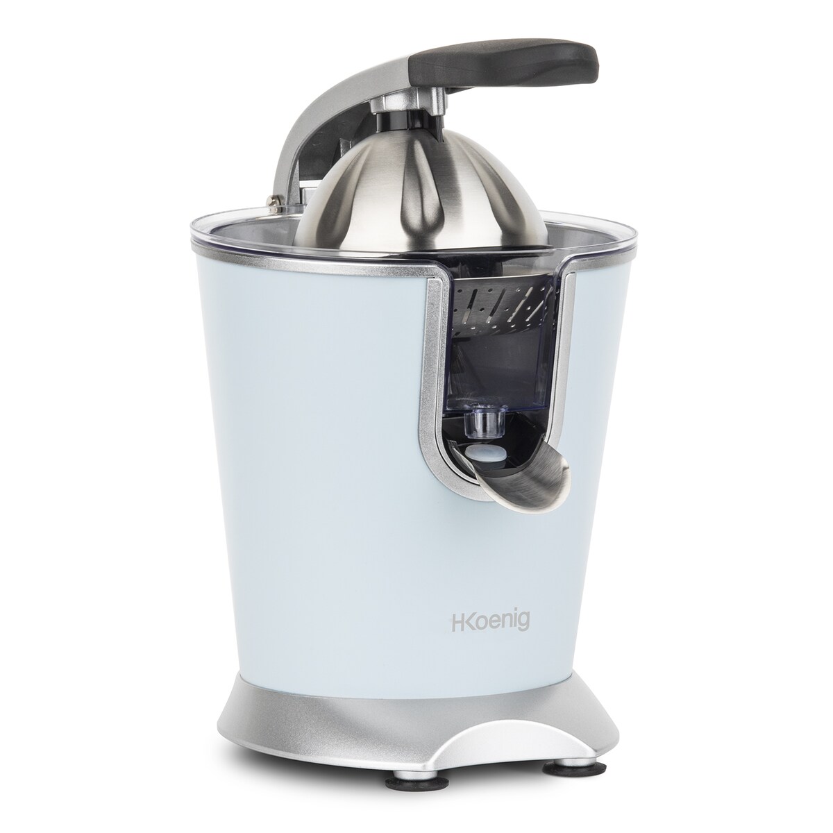 H.Koenig AGR86, Elektrische Zitruspresse 160W, Hebel und Filter aus Edelstahl, Anti-Tropf-System, BPA-frei, spülmaschinenfeste Teile, Pastellblau