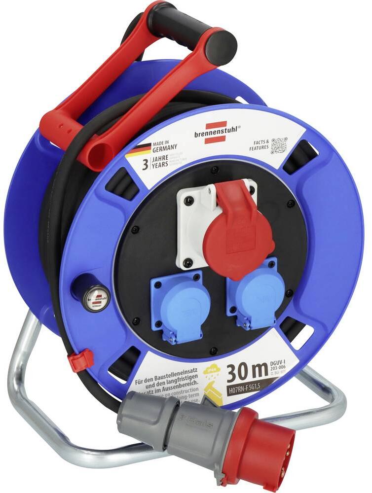30 Meter Brennenstuhl H07RN-F 5G 1,5 mm² Kabeltrommel CEE-Steckdose 16A 5polig blau rot schwarz