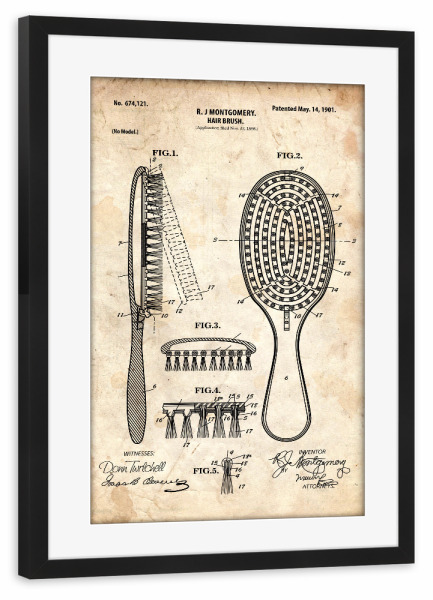 Poster mit schwarzem Rahmen "Haarbürste Patent (Antik)" artboxONE - Fashion - Friseur,Barbier,Barber,Patent,Retro,Haar,Schönheit,Bürste