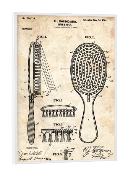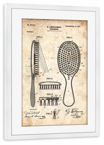 Poster mit Rahmen weiß "Haarbürste Patent (Antik)" artboxONE - Fashion - Friseur,Barbier,Barber,Patent,Retro,Haar,Schönheit,Bürste