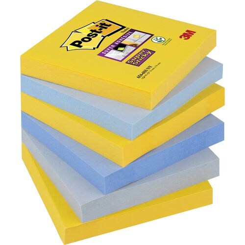 Post-it Super Sticky Notes Haftnotizen - Playful Collection - 76 mm x 127 mm - 90 Blatt/Block - 6 Haftnotizen