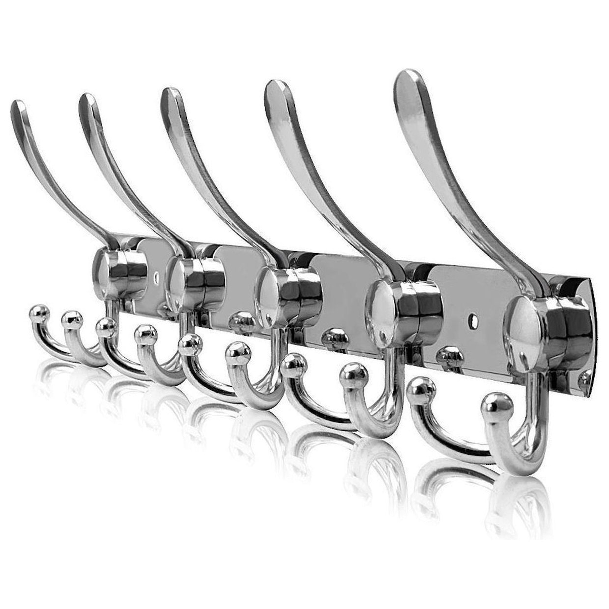 TOJ Living Wandgarderobe – 15 Haken – 45 cm – Edelstahl – Chrom – Hakenleiste