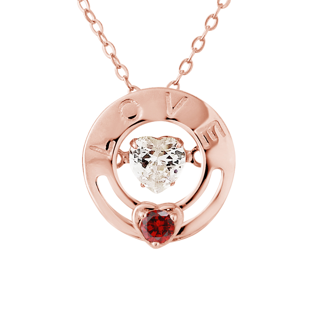 Damen Halskette 925 Silber Gold Herz Baguetteschliff Pink