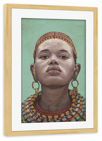 Poster mit Rahmen kiefer "Giraffendame" artboxONE - Menschen - Afrika,Frau,Dame,Schönheit,Porträt,Skizze,Halskette,Ethnisch