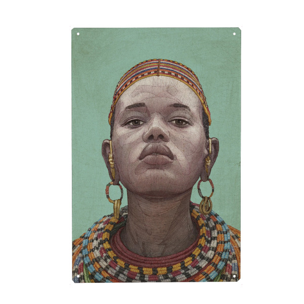 Metall Poster "Giraffendame" artboxONE - Menschen - Afrika,Frau,Dame,Schönheit,Porträt,Skizze,Halskette,Ethnisch - Blechschild