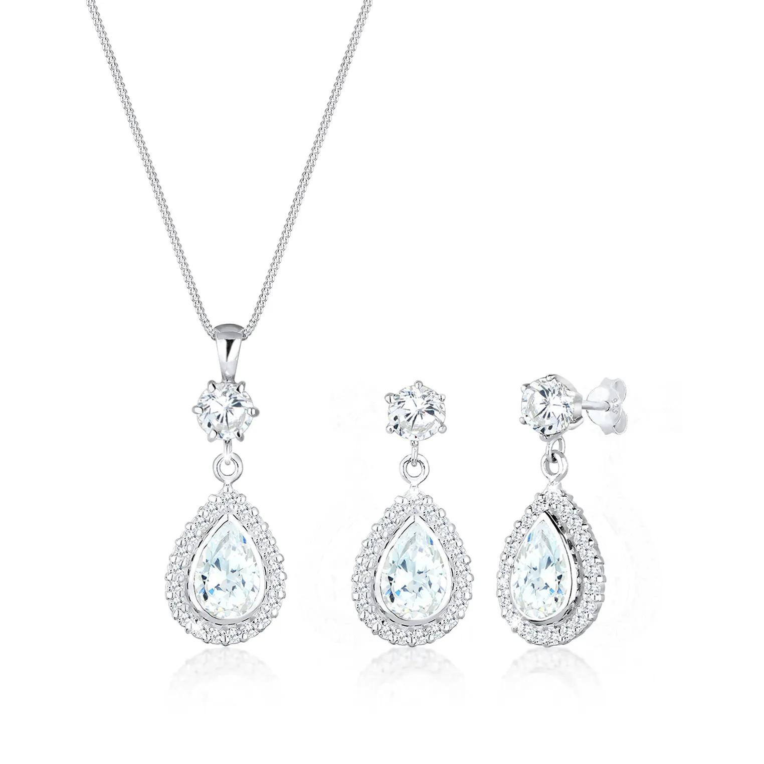 Elli Halsketten - Schmuckset Tropfen Zirkonia 925 Sterling Silber - Gr. unisize - in Weiß - für Damen und Herren
