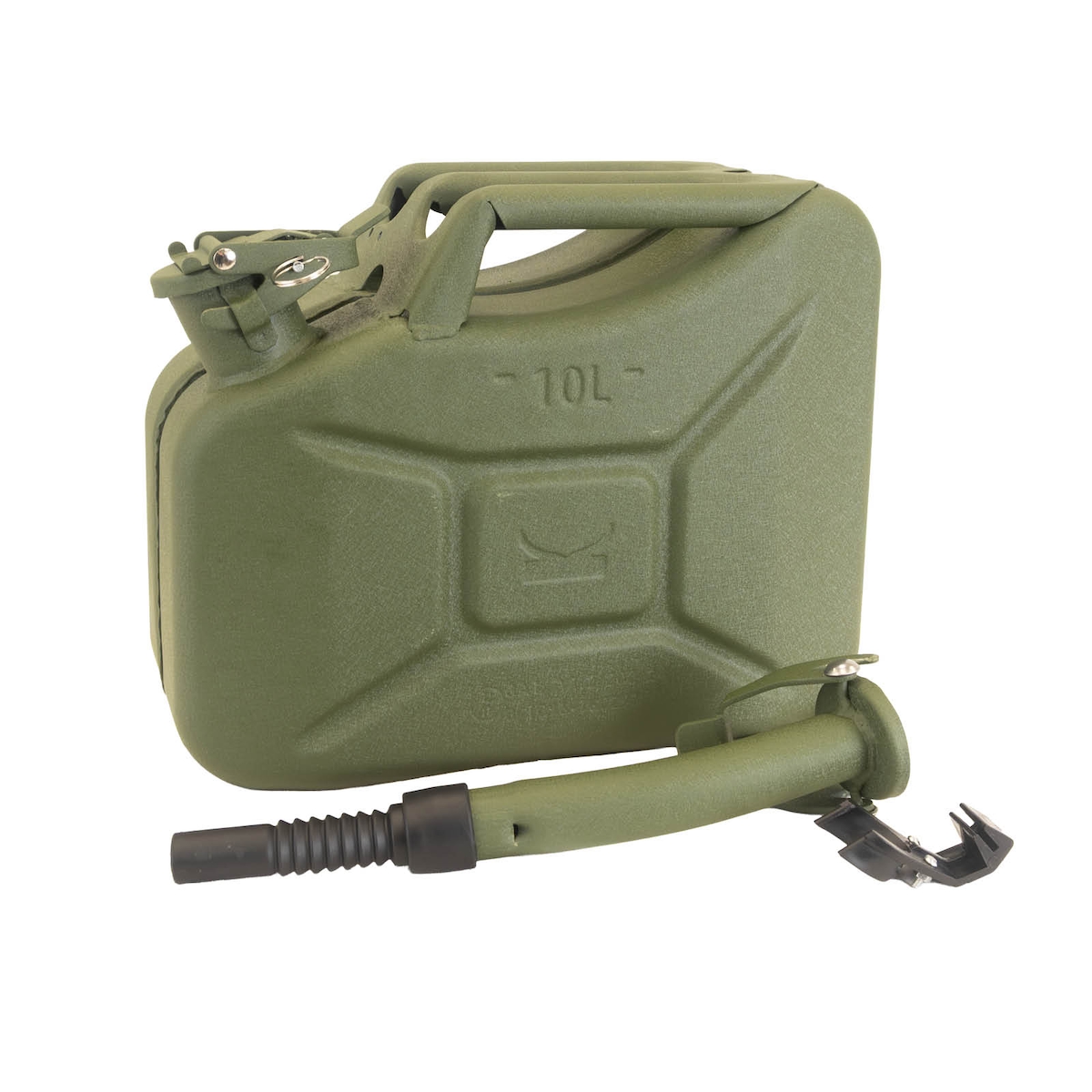 TRUTZHOLM 1x Benzinkanister Kraftstoffkanister Metall 10 Liter Hammerschlag Olivgrün inkl. Ausgießer + Halter