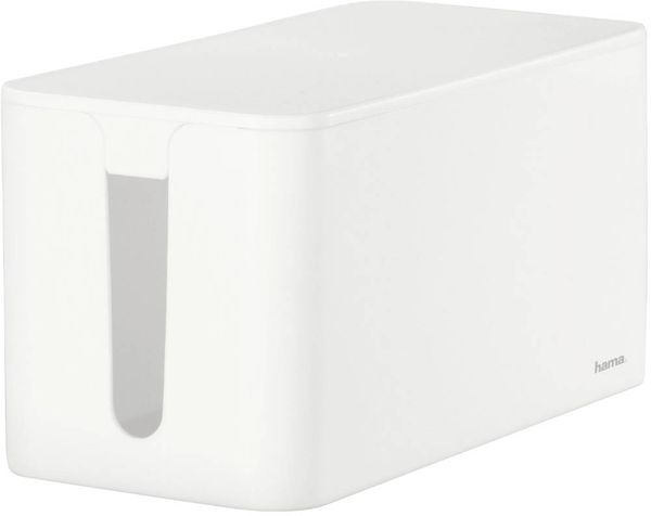 hama Kabelbox "Mini", weiß, für Kabeldurchmesser: 15 mm Schutzbox aus Kunststoff, mit beidseitigen Kabelschlitzen