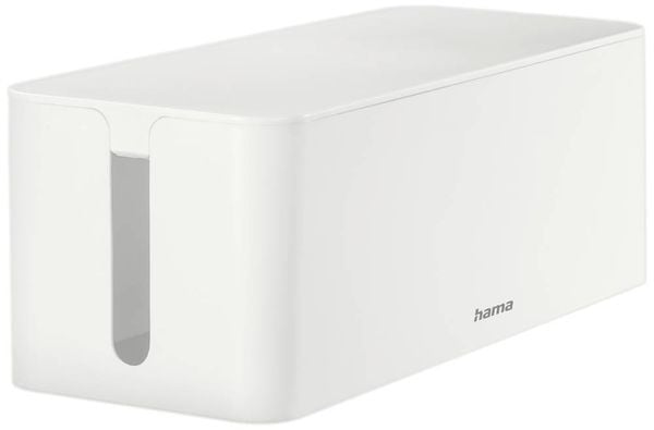 hama Kabelbox "Maxi", weiß, für Kabeldurchmesser: 15 mm Schutzbox aus Kunststoff, mit beidseitigen Kabelschlitzen