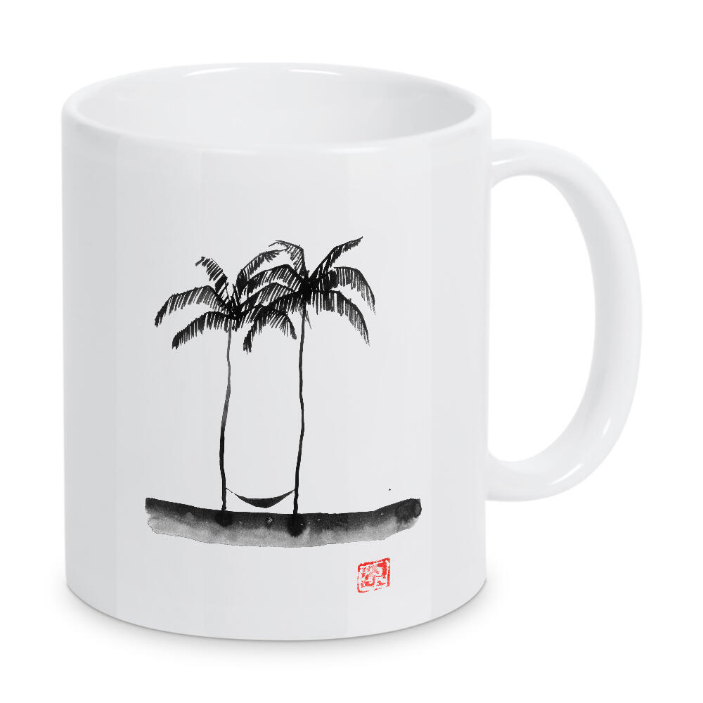 Tasse "Hamac" artboxONE - Natur - Hamac,Plamtree,Sumie,Japan,Palmen,Palmtress,Natur,Natuer,Schwarzweiß,Blackandwhite,Strand,Beach