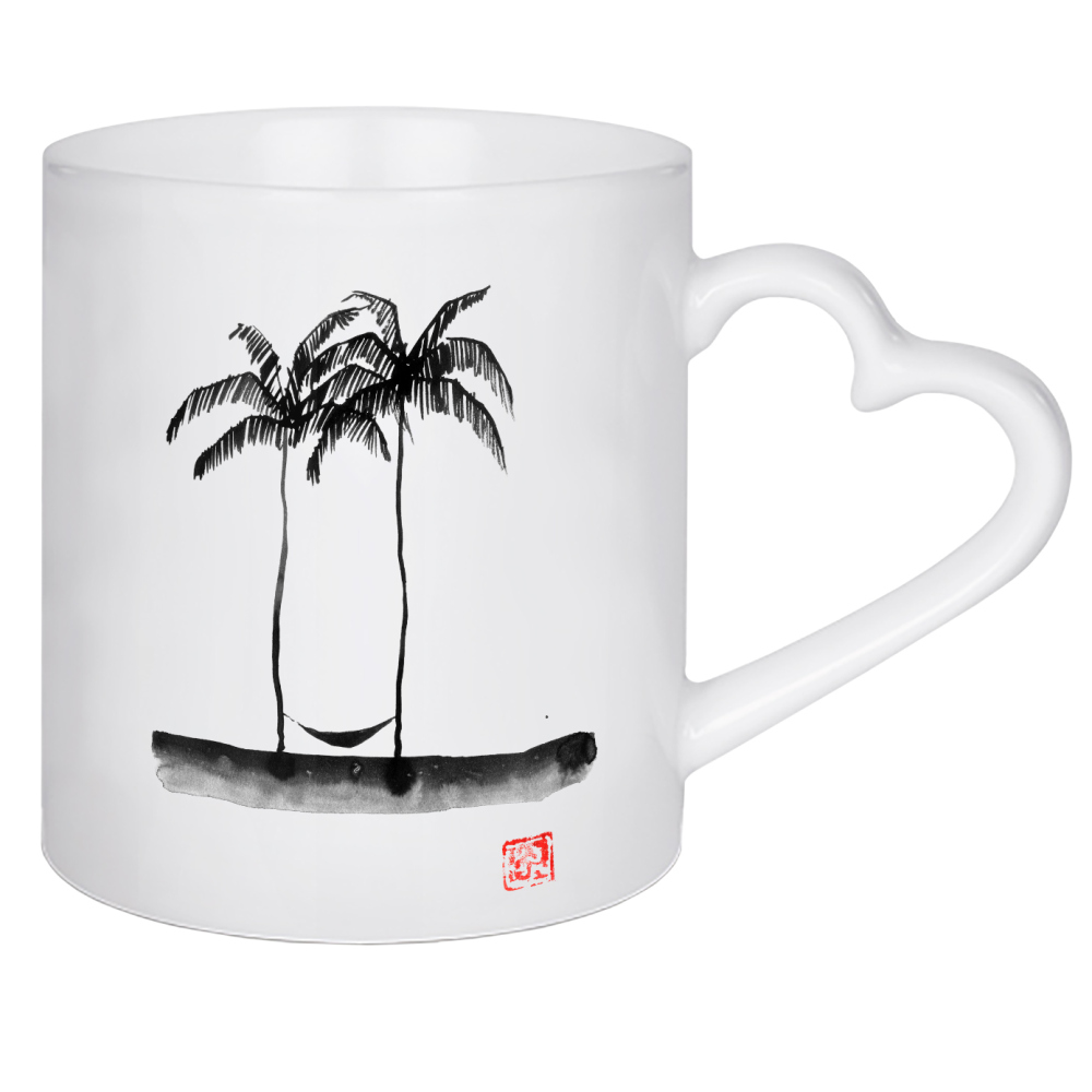 Herztasse "Hamac" artboxONE - Natur - Hamac,Plamtree,Sumie,Japan,Palmen,Palmtress,Natur,Natuer,Schwarzweiß,Blackandwhite,Strand,Beach
