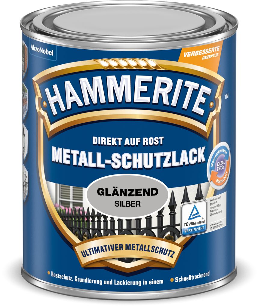 0,25L Hammerite Metallschutz Lack silber glänzend Metallschutzlack Lack