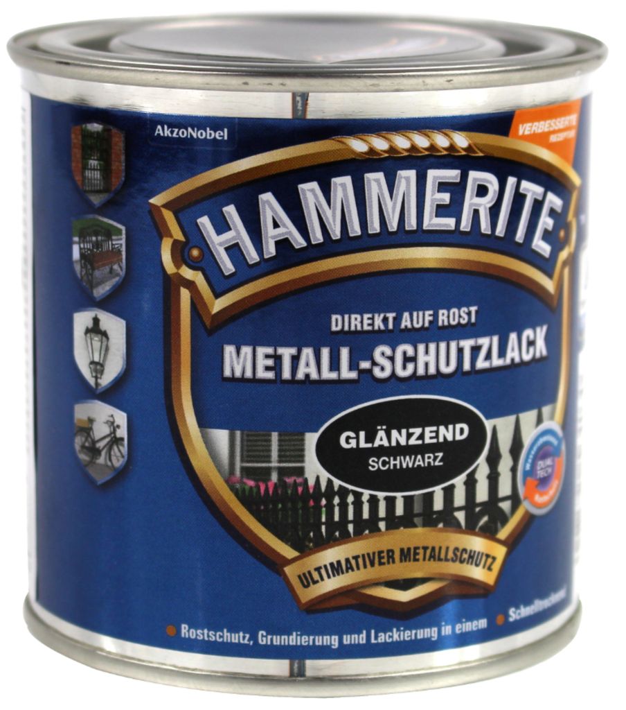 0,25L Hammerite Metallschutz Lack schwarz glänzend Metallschutzlack Lack