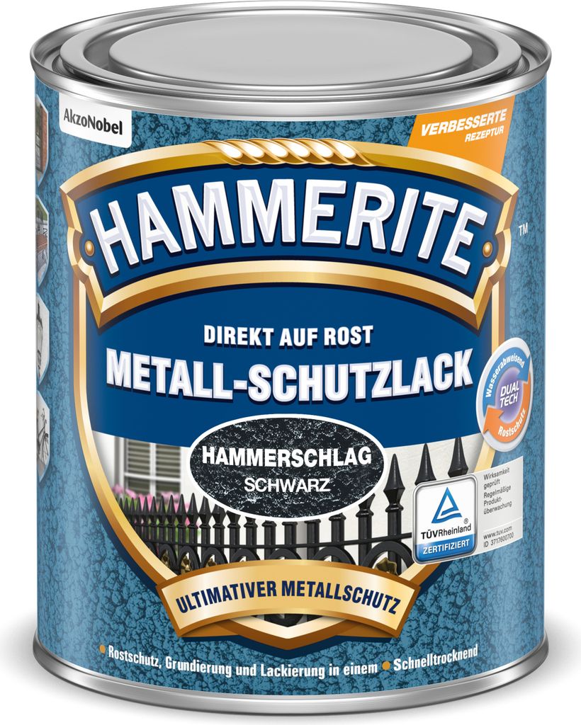 Hammerite Metallschutzlack Hammerschlag, 3in1 Rostschutz für Metall, Schwarz, 750 ml