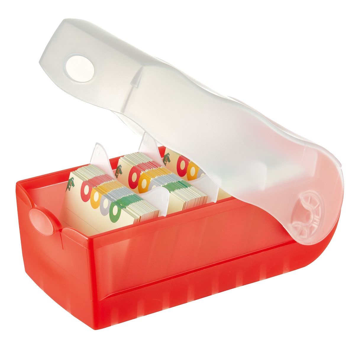 HAN CROCO 998-617 Karteibox Transluzent, Rot max. Anzahl der Karten: 500 Karten DIN A8 quer inkl. 100 linierten Karten