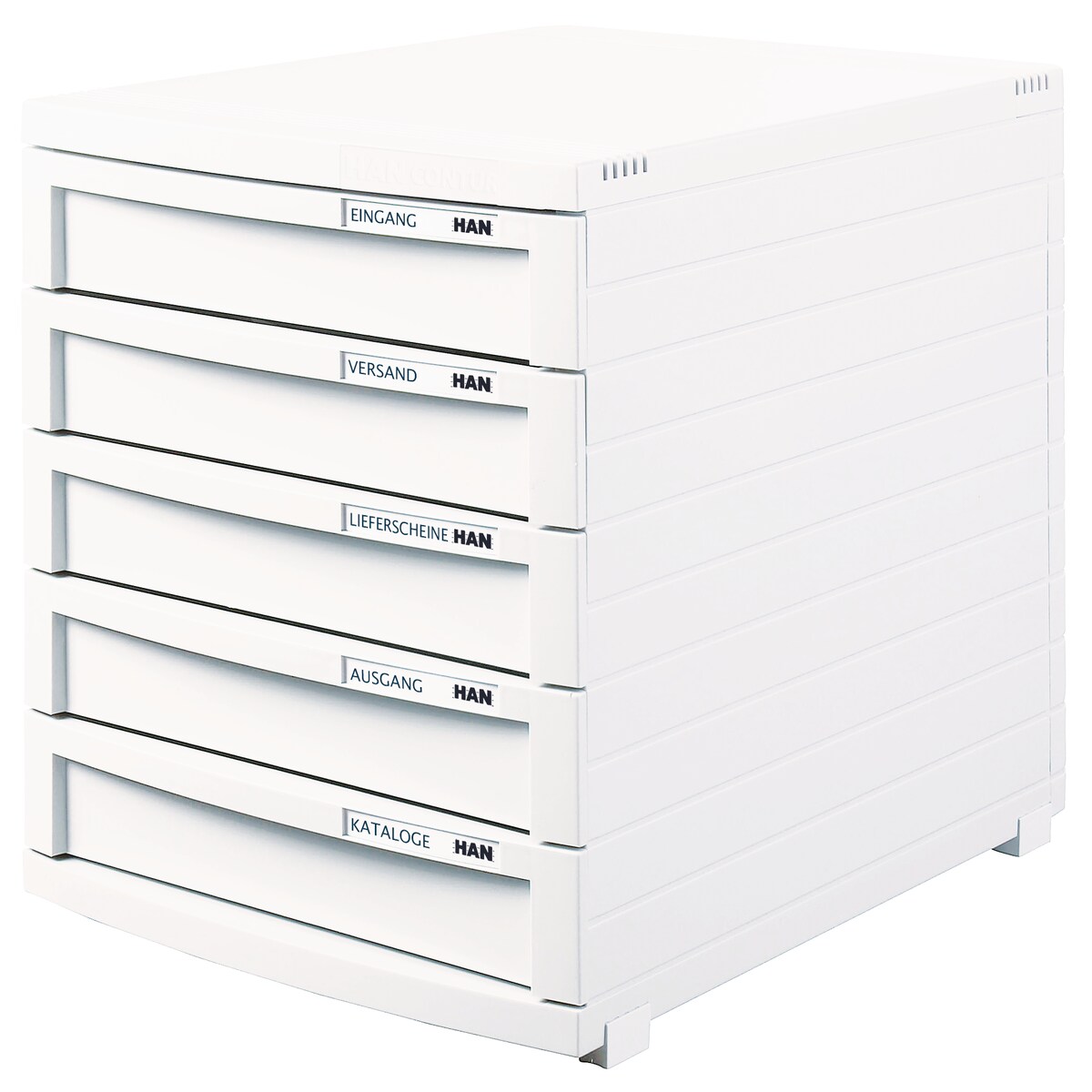 HAN Schubladenbox Contur weiß 1505-12, DIN B4 mit 5 Schubladen
