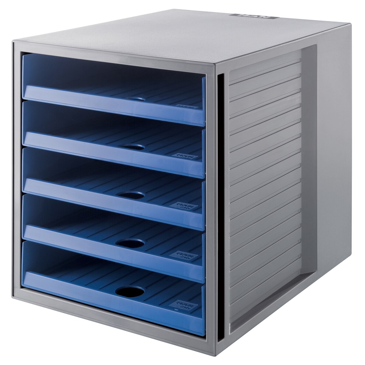 HAN Schubladenbox SCHRANK-SET KARMA, DIN A4, 5 offene Schubladen, grau/öko-blau
