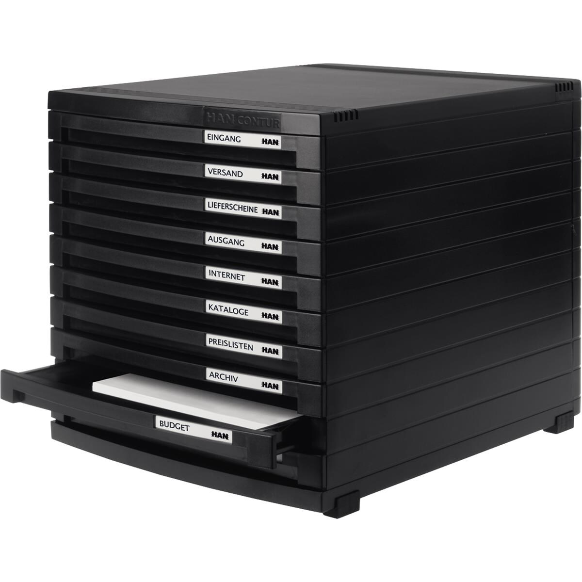 HAN CONTUR 1510-13 Schubladenbox Schwarz DIN A4, DIN B4, DIN C4 Anzahl der Schubfächer: 10