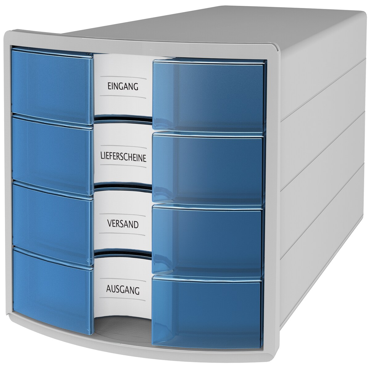 HAN Schubladenbox IMPULS 2.0 4 Schubladen lichtgrau / blau transluzent klar