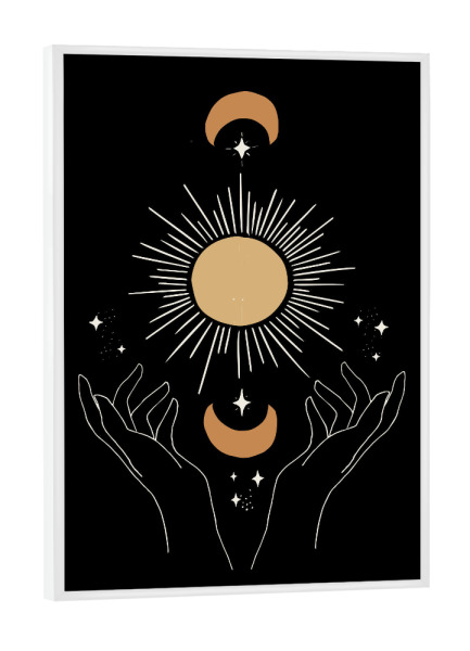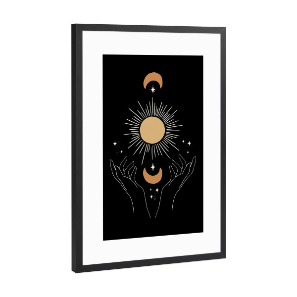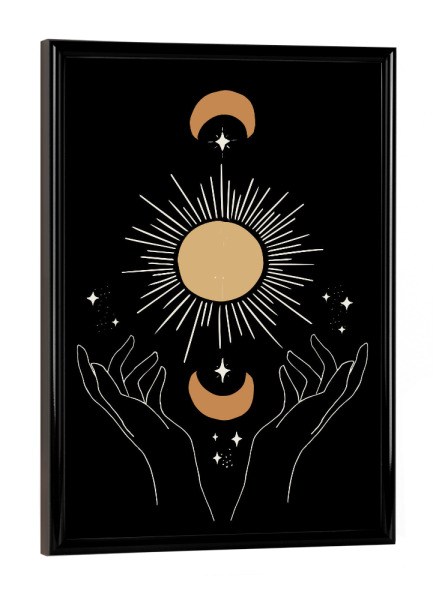 Poster mit schwarzem Rahmen "Celestial Hands Sun Moon Stars" artboxONE - Natur,Liebe,Galaxy