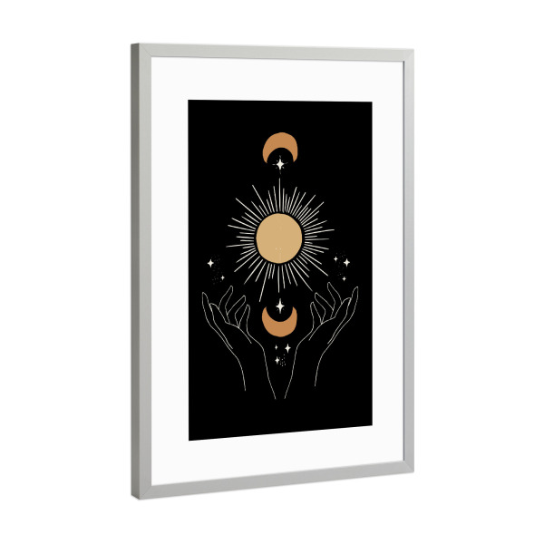Poster mit Rahmen Silber "Celestial Hands Sun Moon Stars" artboxONE - Natur,Liebe,Galaxy