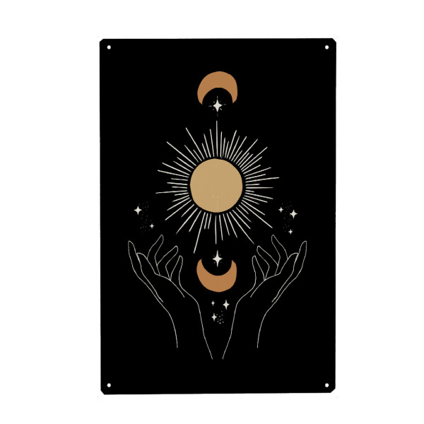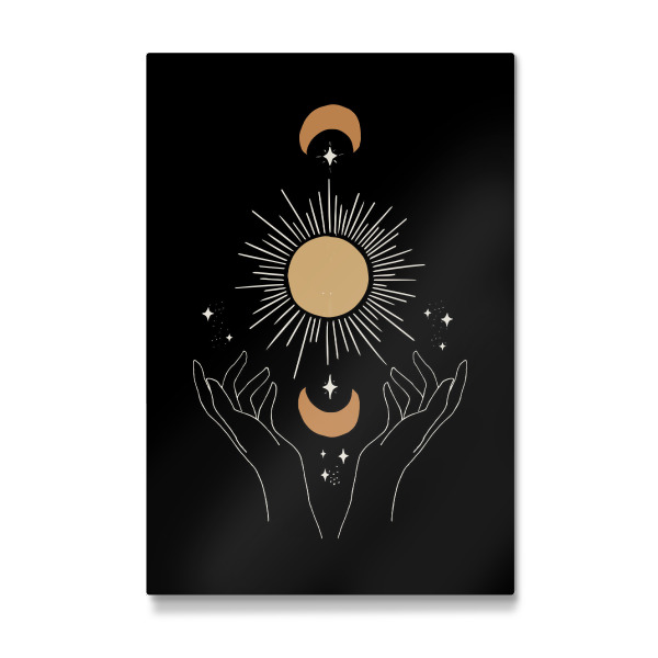 Poster mit Rahmen Schwarz (Metallic) "Celestial Hands Sun Moon Stars" artboxONE - Natur,Liebe,Galaxy