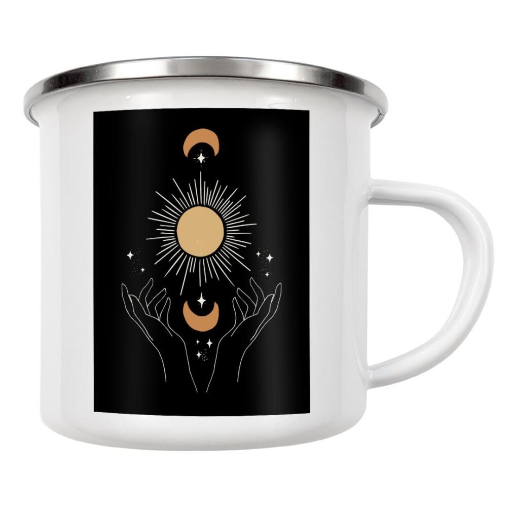 Emaille Tasse "Celestial Hands Sun Moon Stars" artboxONE - Natur,Liebe,Galaxy