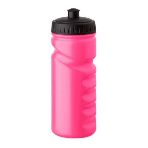 Werbeartikel Sport-Trinkflasche 500ml mit Handgriff solider PE-Kunststoff leicht & bruchsicher für Fitness – fuchsia – mit Logo bedruckt