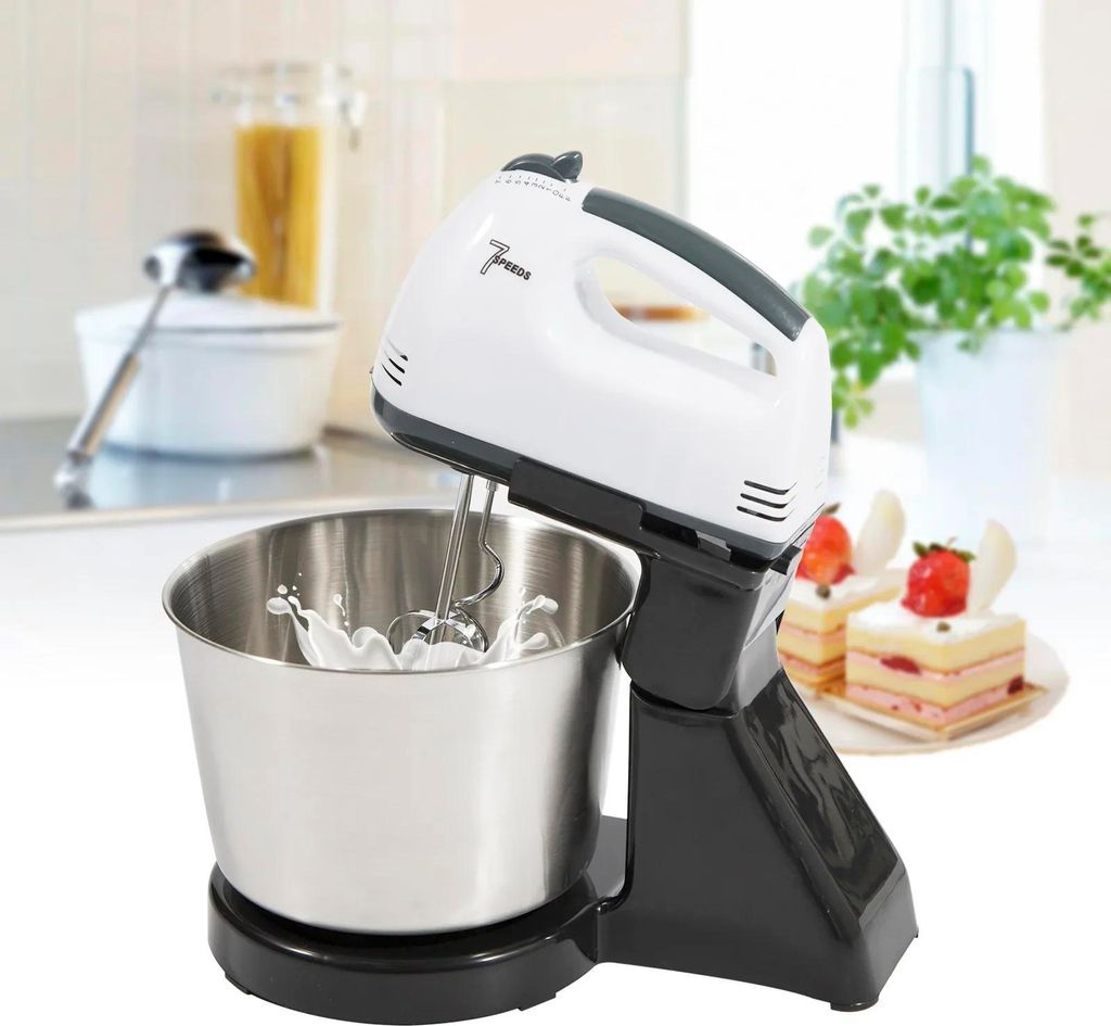 Küchenmixer - Handmixer mit Standfuß - 7 Stufen - 350 W - 1,7 l Edelstahlschüssel - Zum Schlagen von Eiern und Sahne, zum Backen