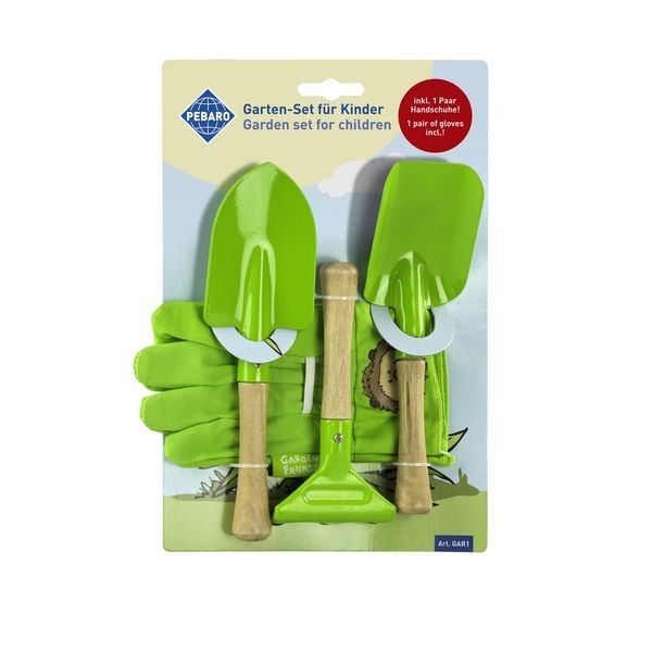 PEBARO GAR1 - Garten-Set für Kinder mit Schaufeln, Harke und Handschuhe, grün